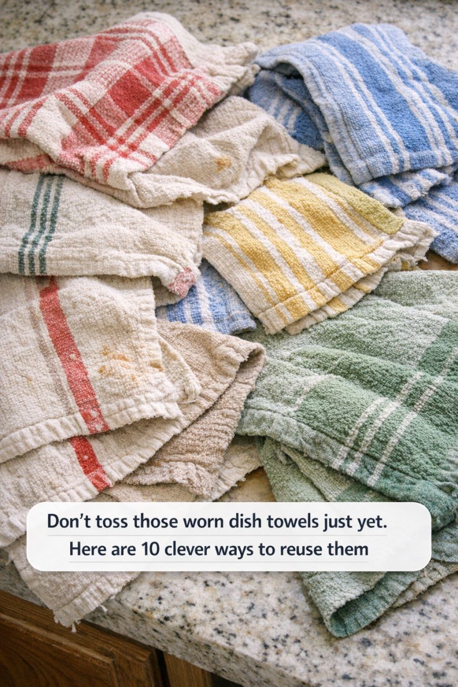 Don’t toss those worn dish towels just yet. Here are 10 clever ways to reuse them